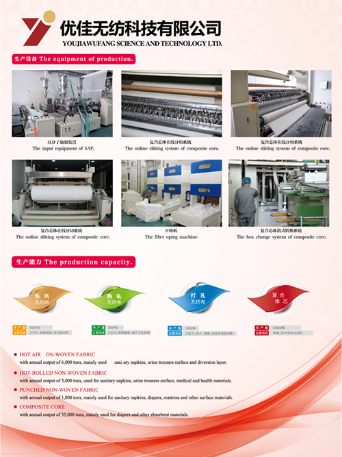 打孔無紡布:主要用于衛生巾,尿片,尿褲,床墊等面層材料。復合芯體:主要用于尿褲尿片等吸水材料。